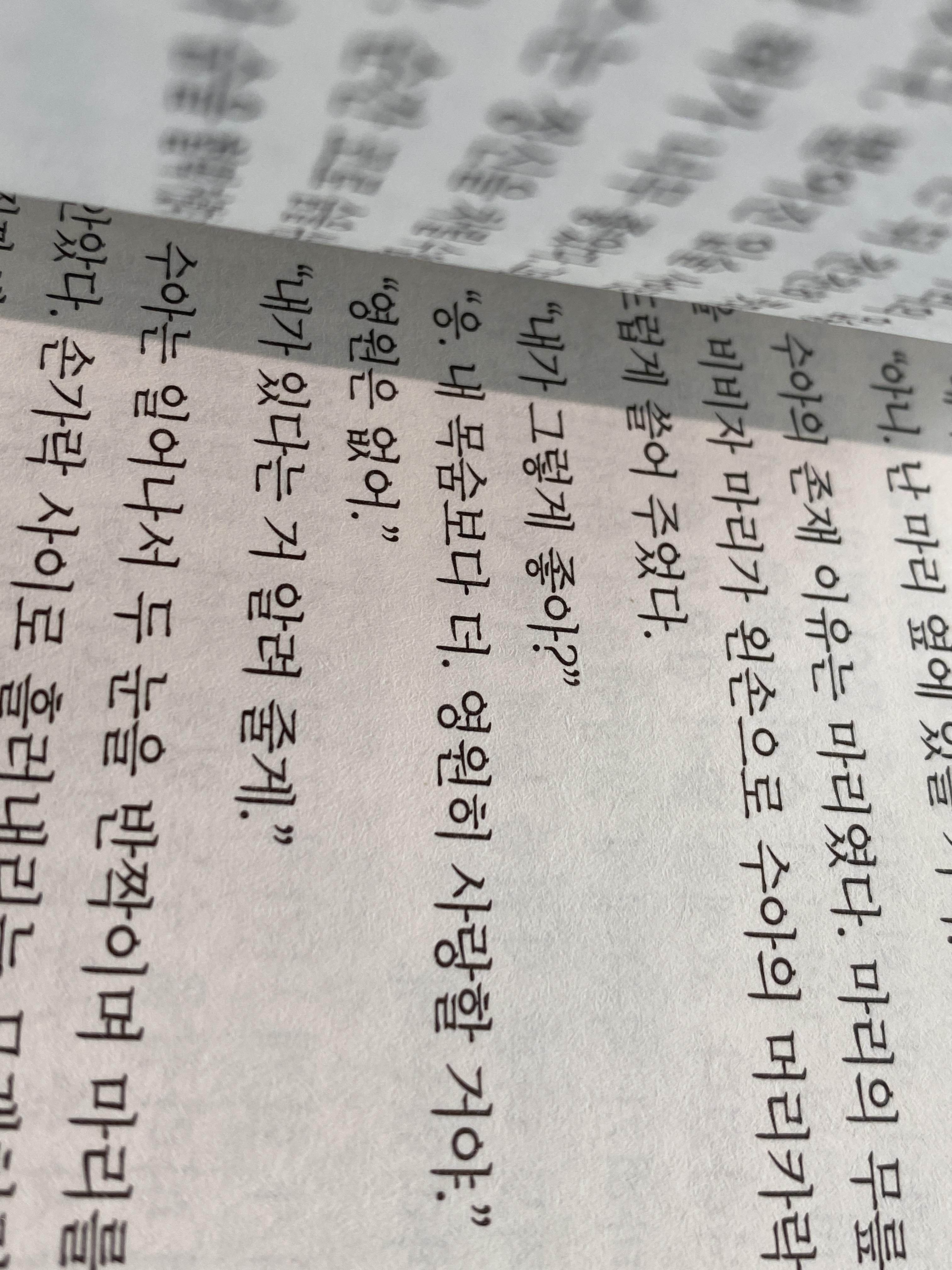 7. 마녀와 인어. 어느 모로 봐도 둘 다 행복해질 확률은 낮아보이는 존재들이다. 둘의 조합은 더더욱 그러하다. 그럼에도 마리와 수아는 다시 만났고, 끊임없이 서로를 사랑했다. 마리와 수아가 다시 행복해질 기회가 주어져서 좋았다. 그들은, 여성들은 조금 더 행복해져야 한다. 그랬으면 좋겠다. 이 자체로도 하나의 기원일지 모른다.